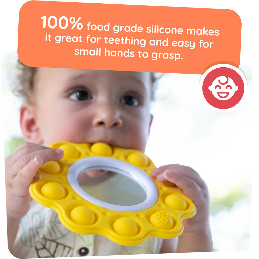 Soft silicone bubbles to pop, with a safe mirror in the middle.