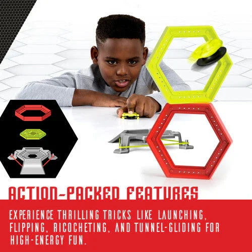 This dynamic set features ramps, rebounders, rings, a tunnel and a magnetic target—everything you need to build wild stunts and epic launches. Load a Mag-Pod into the launcher, pull back, aim and fire. Ricochet, flip and zoom through the course to become a trick-shot master.